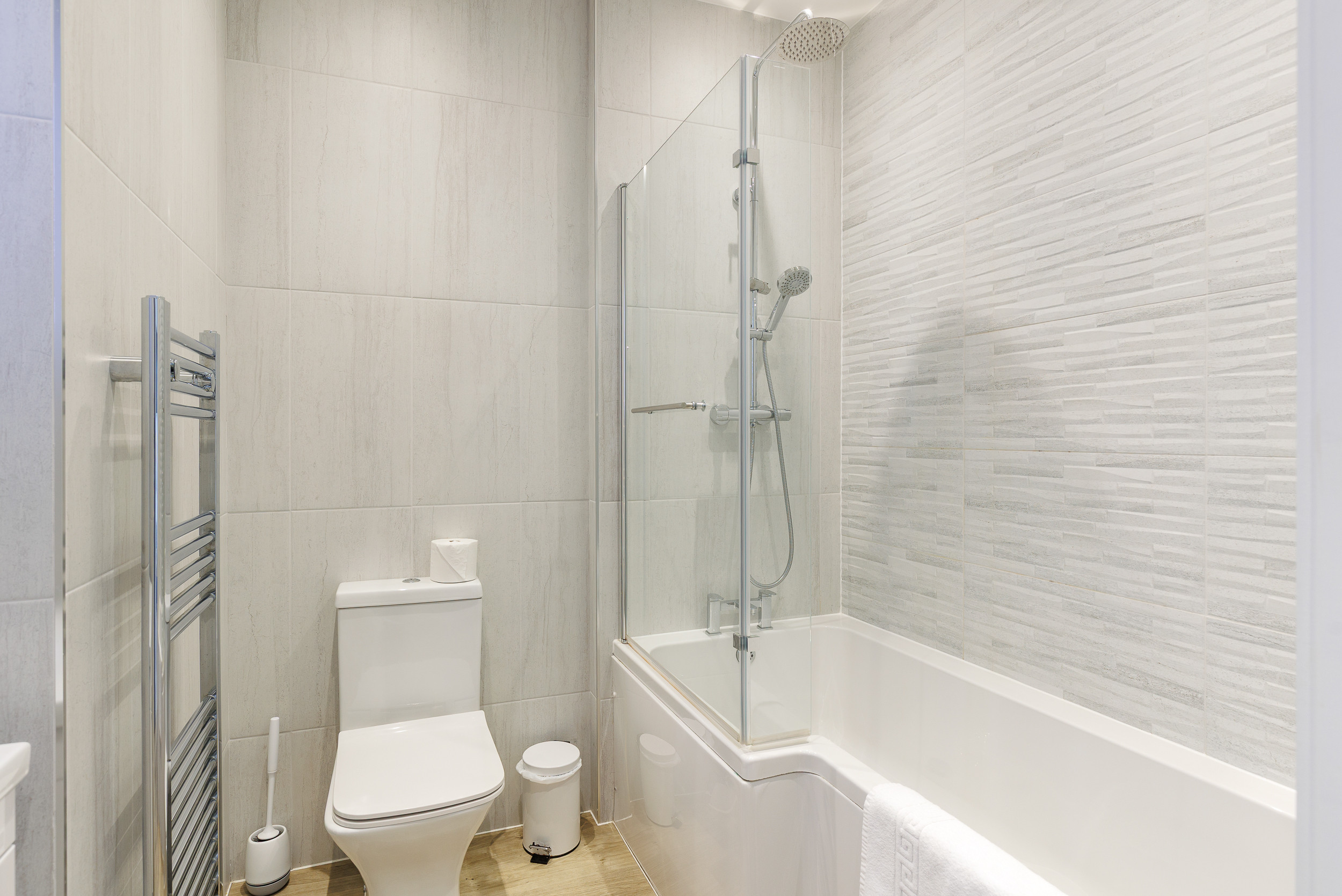 En-suite 1: high pressure, multi head shower, wash basin, toilet and storage