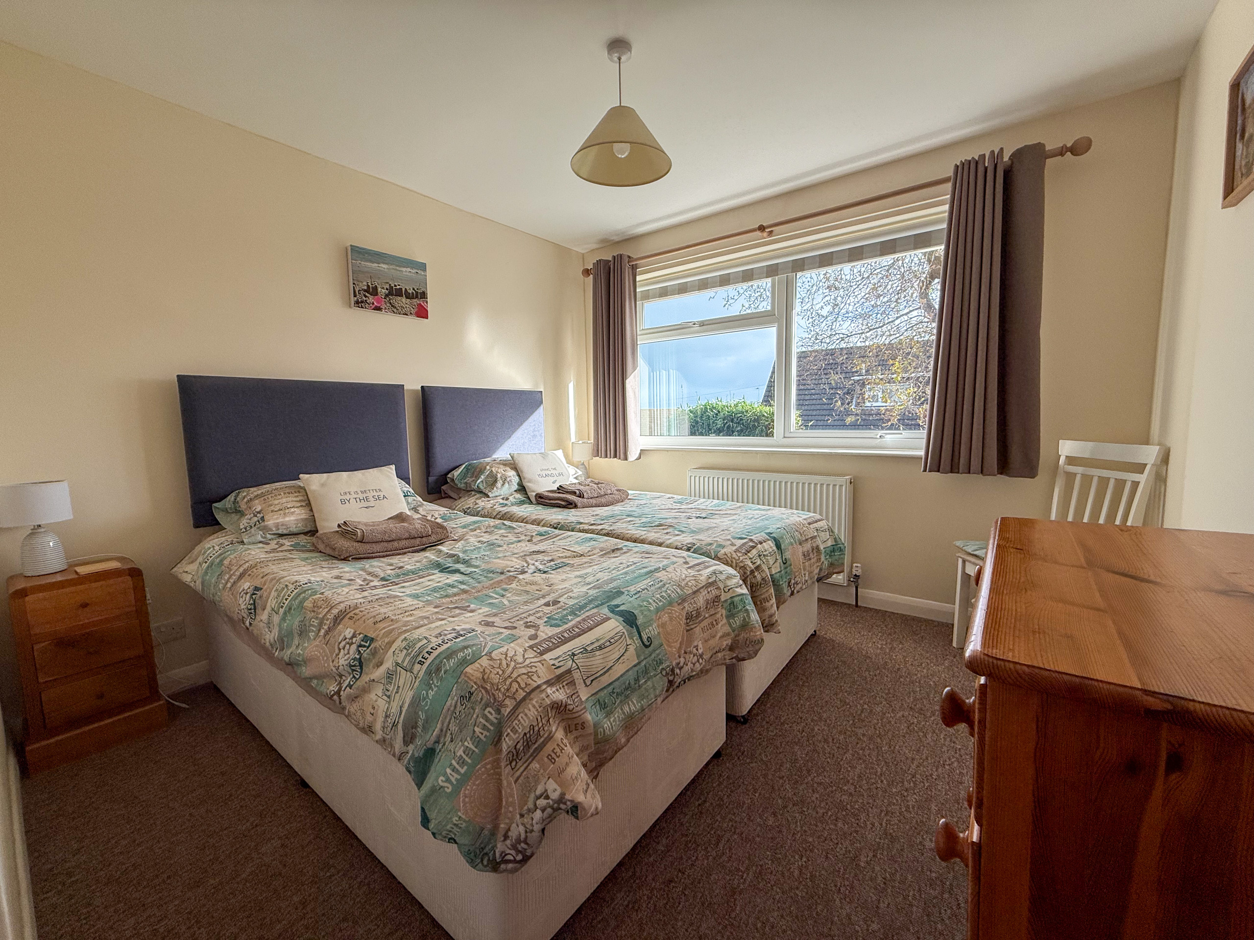 Bedroom 3: Twin beds and bedside cabinet between the beds