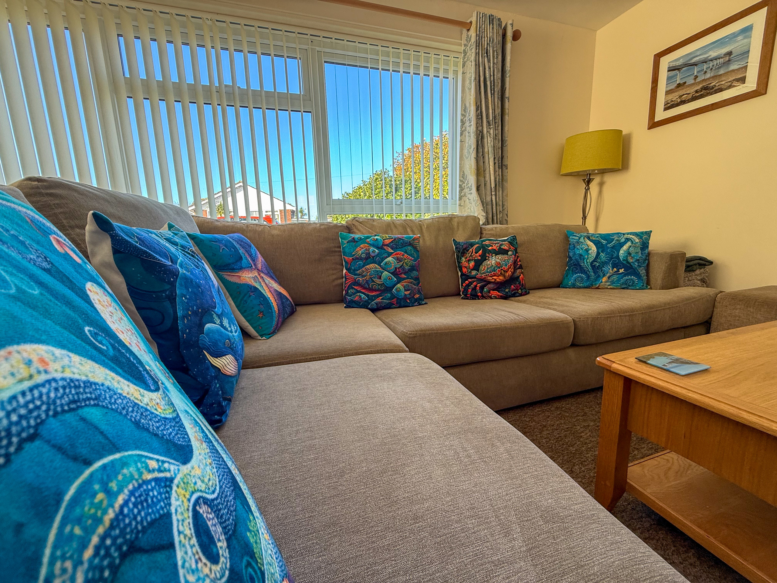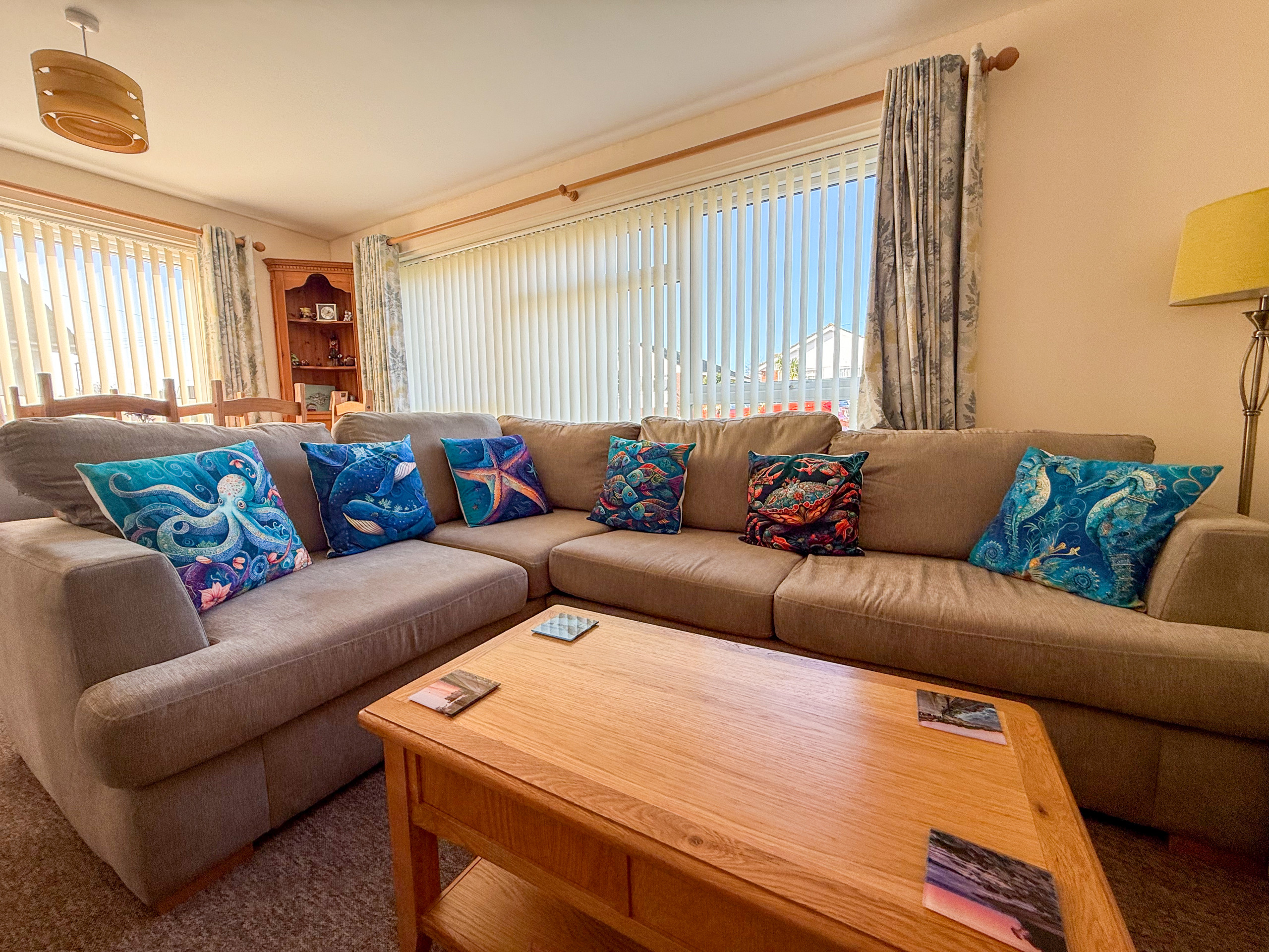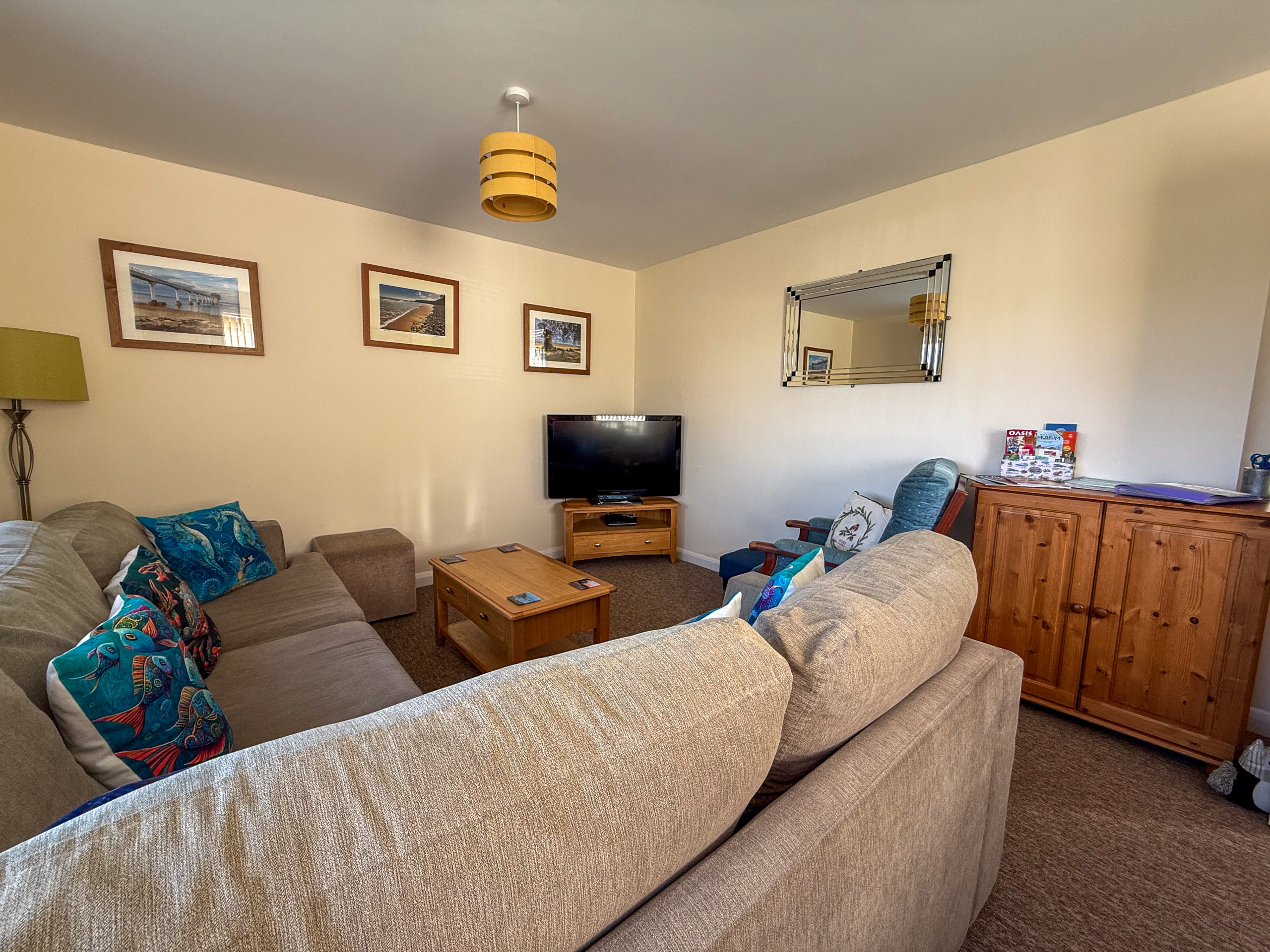 Lounge diner: corner sofa (double sofa bed), coffee table and Freeview Smart TV, dining table and chairs
