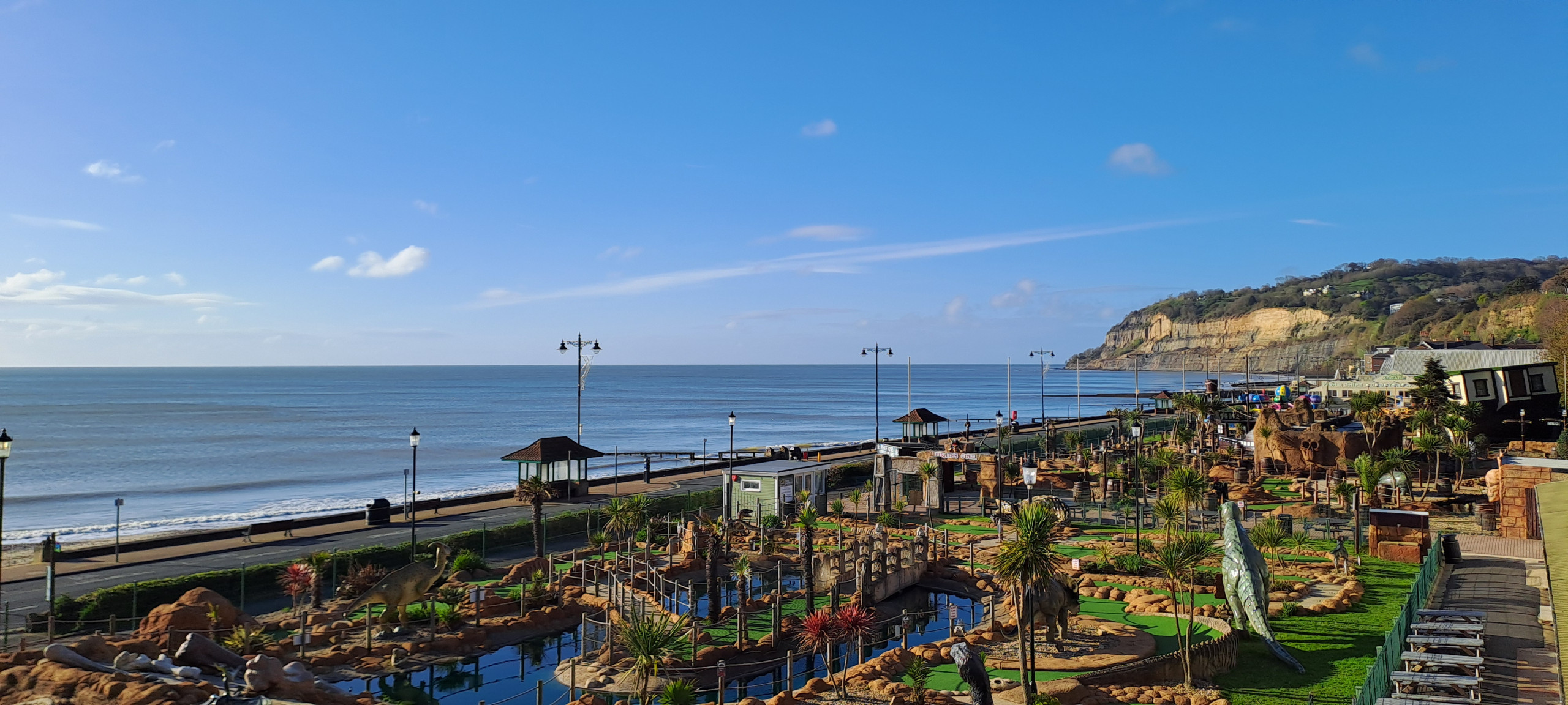 Just a short drive away lies Shanklin Beach, one of the island’s best-loved seaside destinations. This long sandy beach is perfect for swimming, sunbathing, and family days out, with plenty of traditional amusements including crazy golf, arcades, beach cafés, and ice cream stalls. The seafront promenade is lined with lively restaurants and pubs where you can enjoy local seafood and a relaxed coastal atmosphere.
