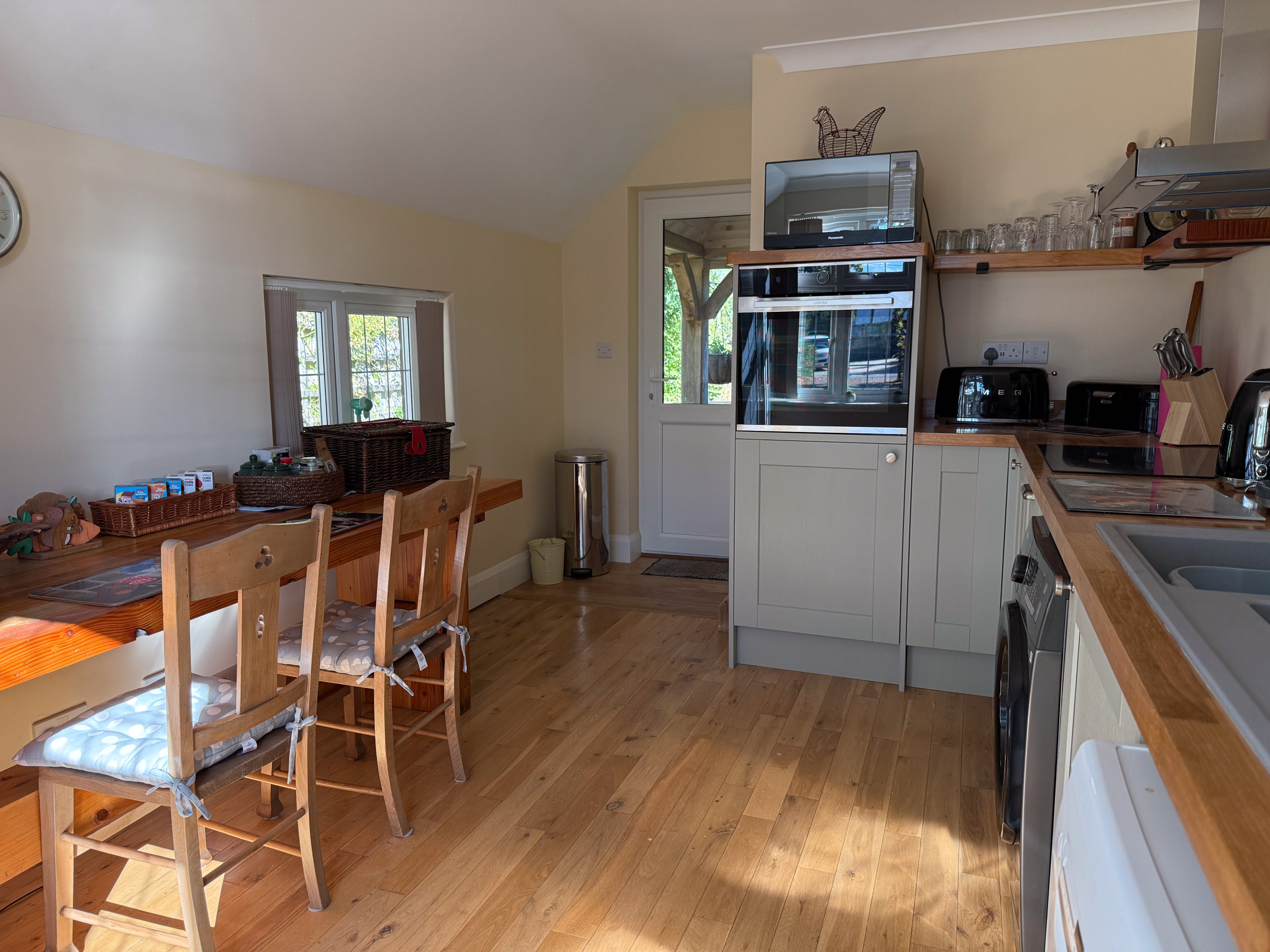 The fully equipped kitchen provides everything you need for self-catering, whether you’re preparing a relaxed breakfast or a home-cooked evening meal. Practical amenities include Wi-Fi, ample off-road parking, and a central Isle of Wight location just minutes from the ferry terminals — making it an ideal base for exploring the island.