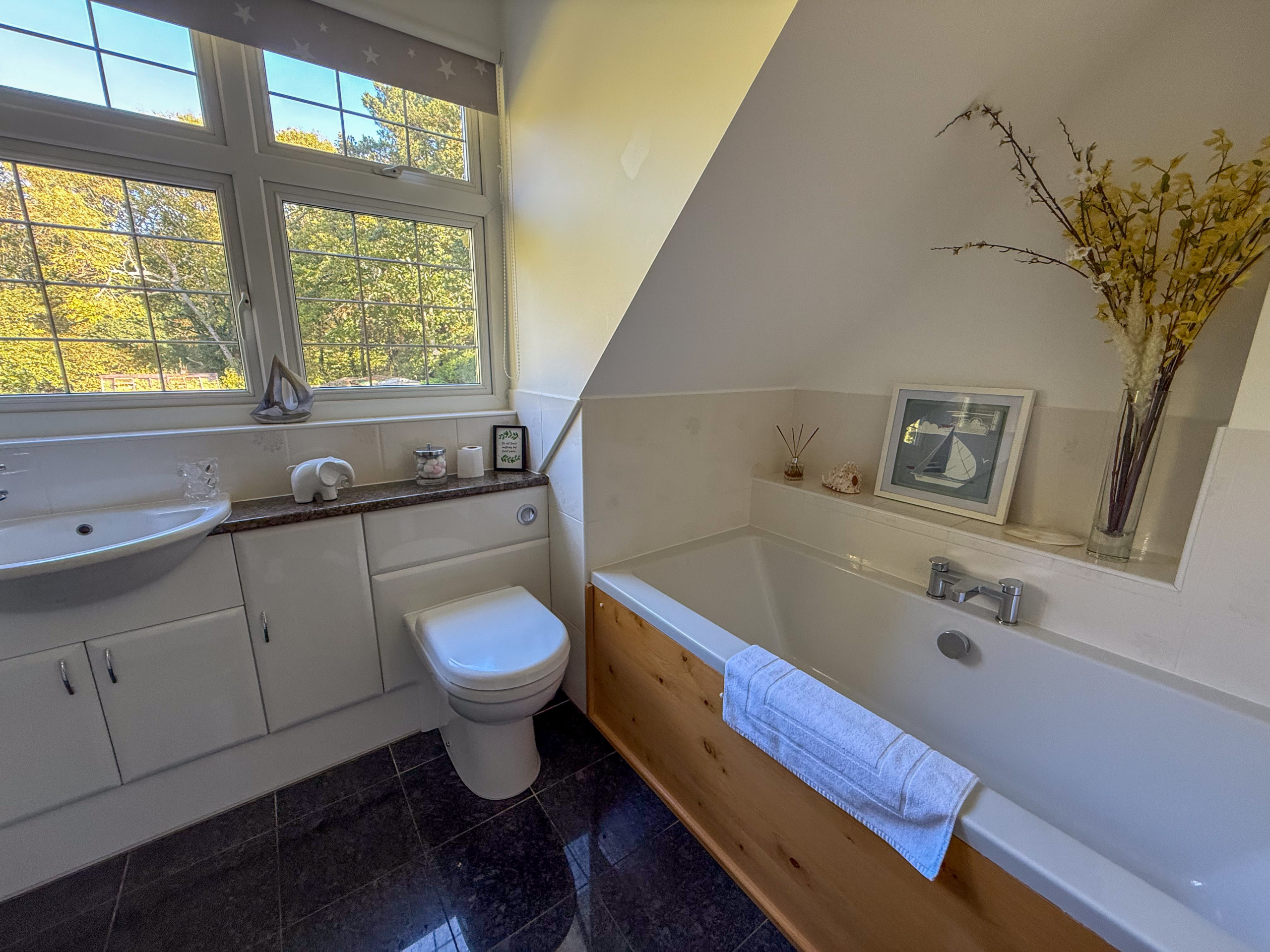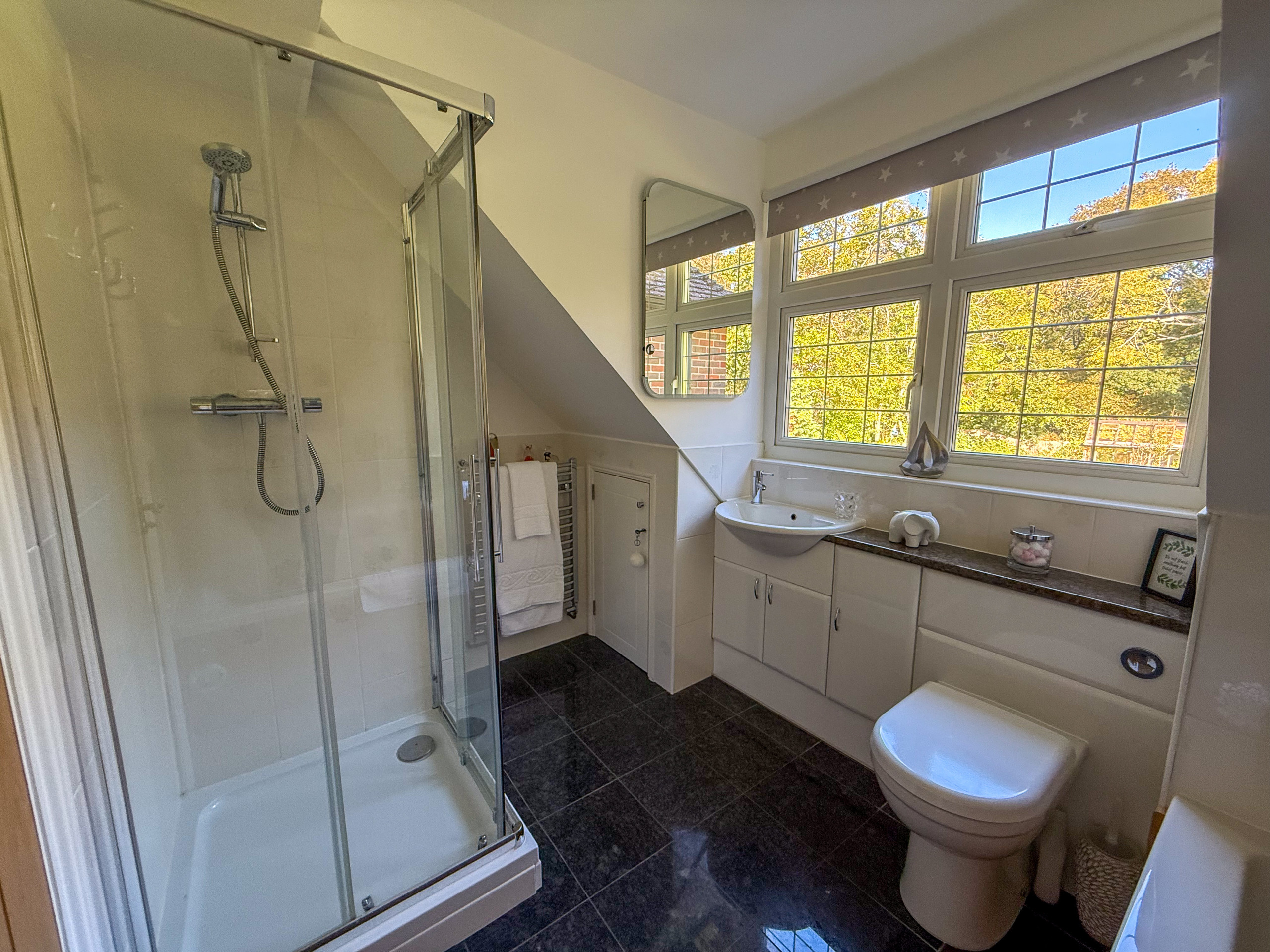 Bathroom - Bath, seperate shower, wc, basin and heated railway.