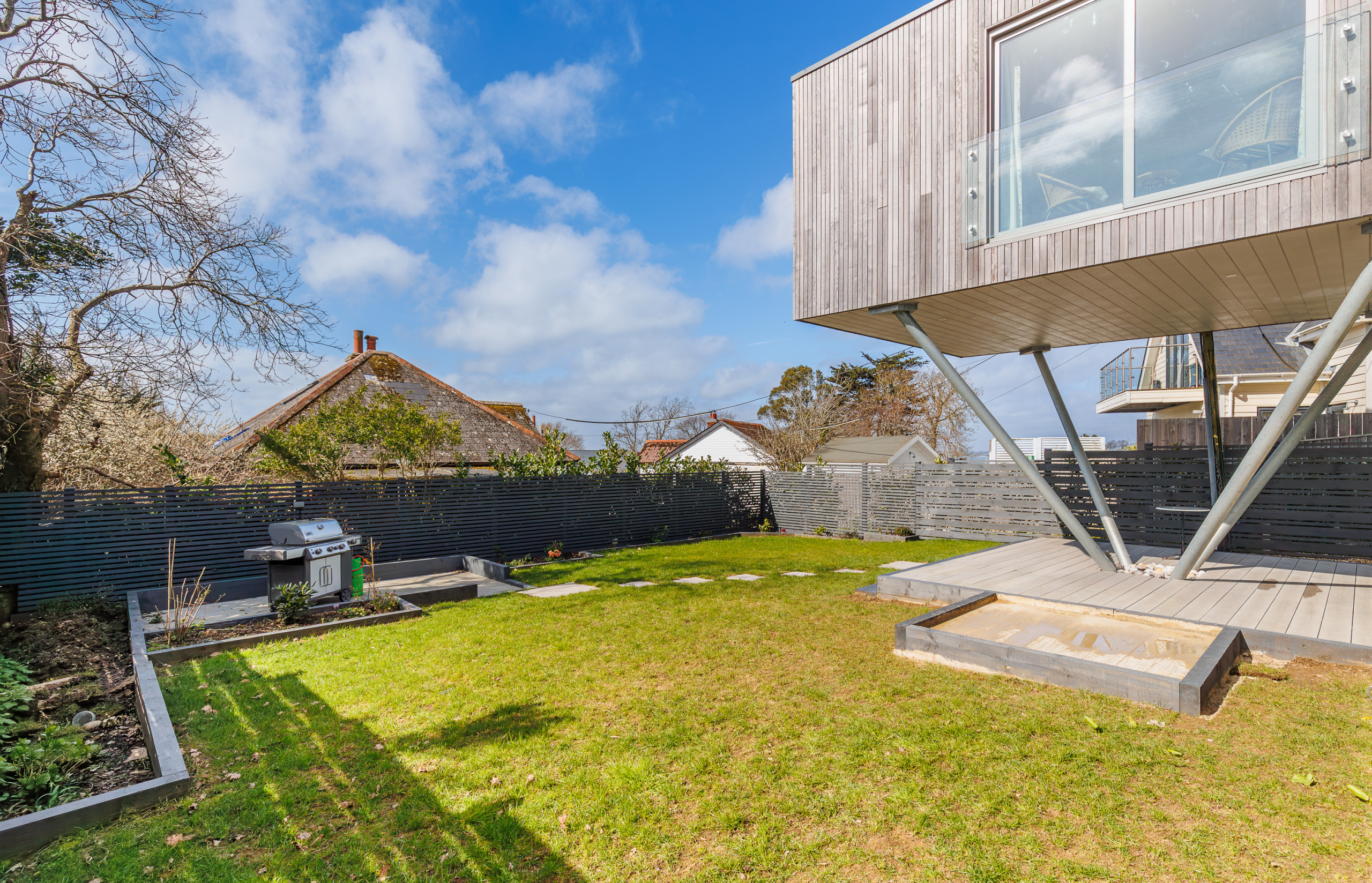 A sun-soaked decked area, creates a private suntrap sheltered from the breeze.