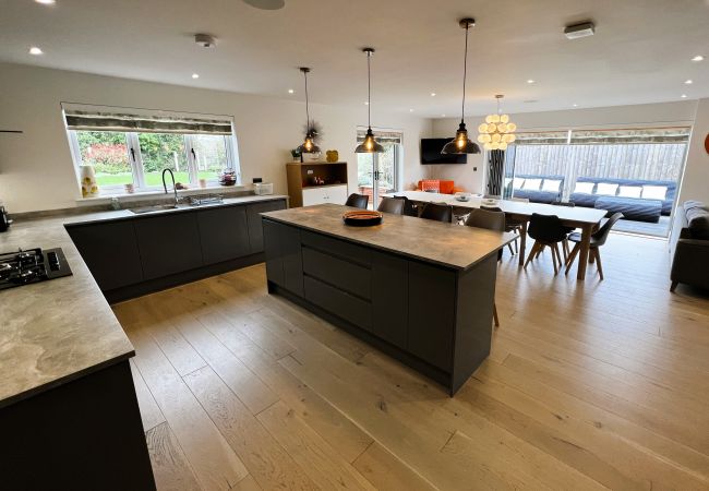 Kitchen Area: Breakfast bar, 2 electric ovens, 5-ring gas hob, combi microwave/oven/grill, dual air fryer, fridge/freezer, dishwasher, Tassimo coffee machine