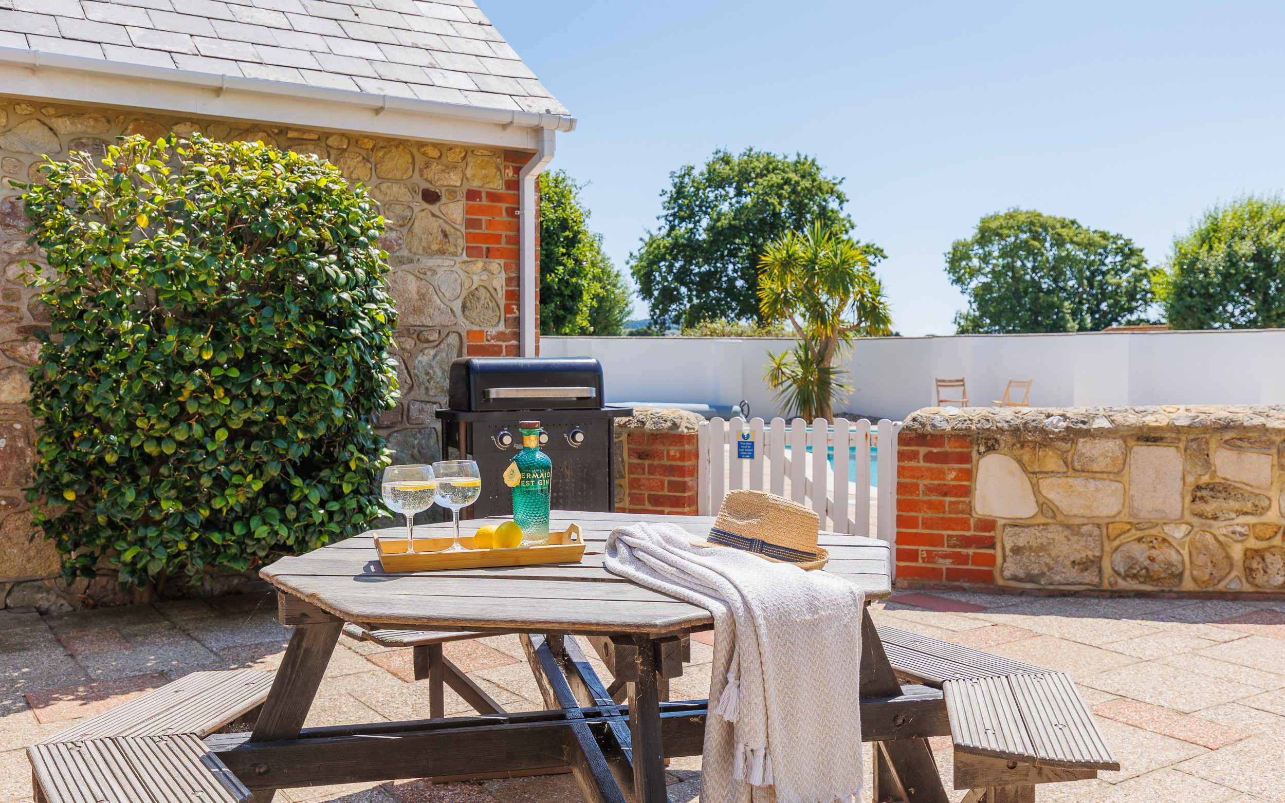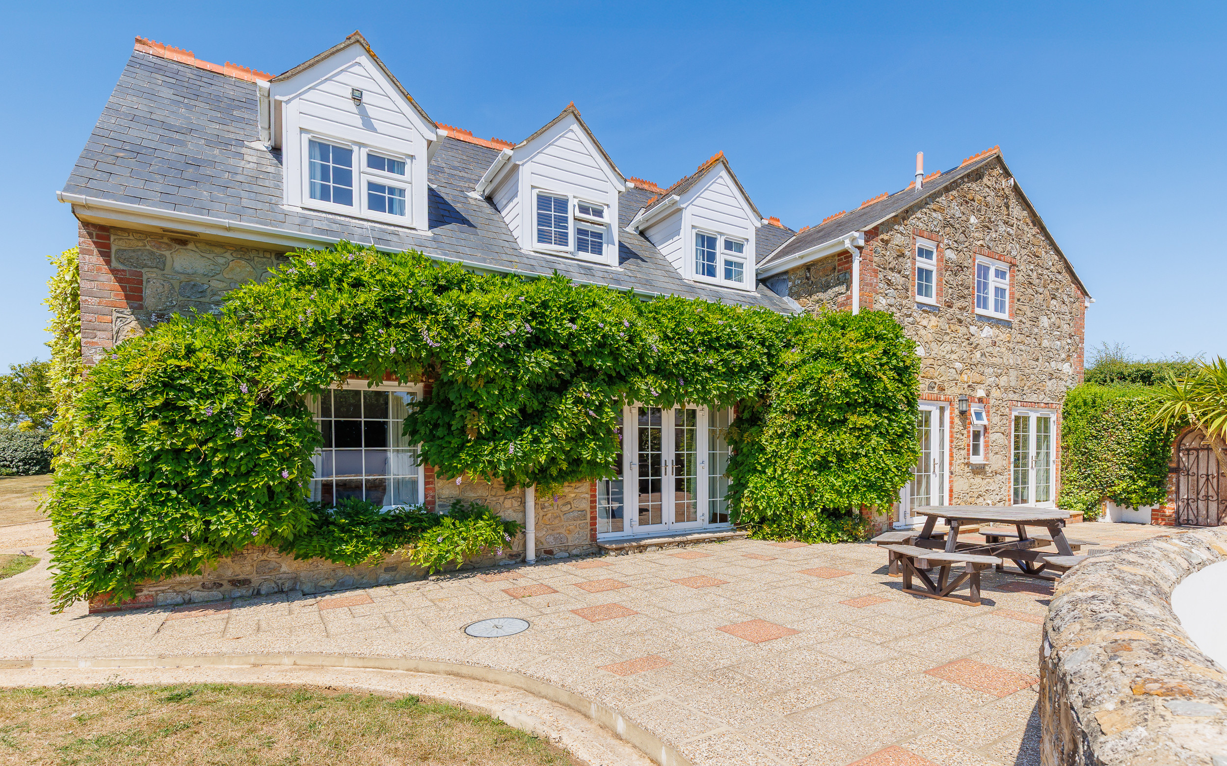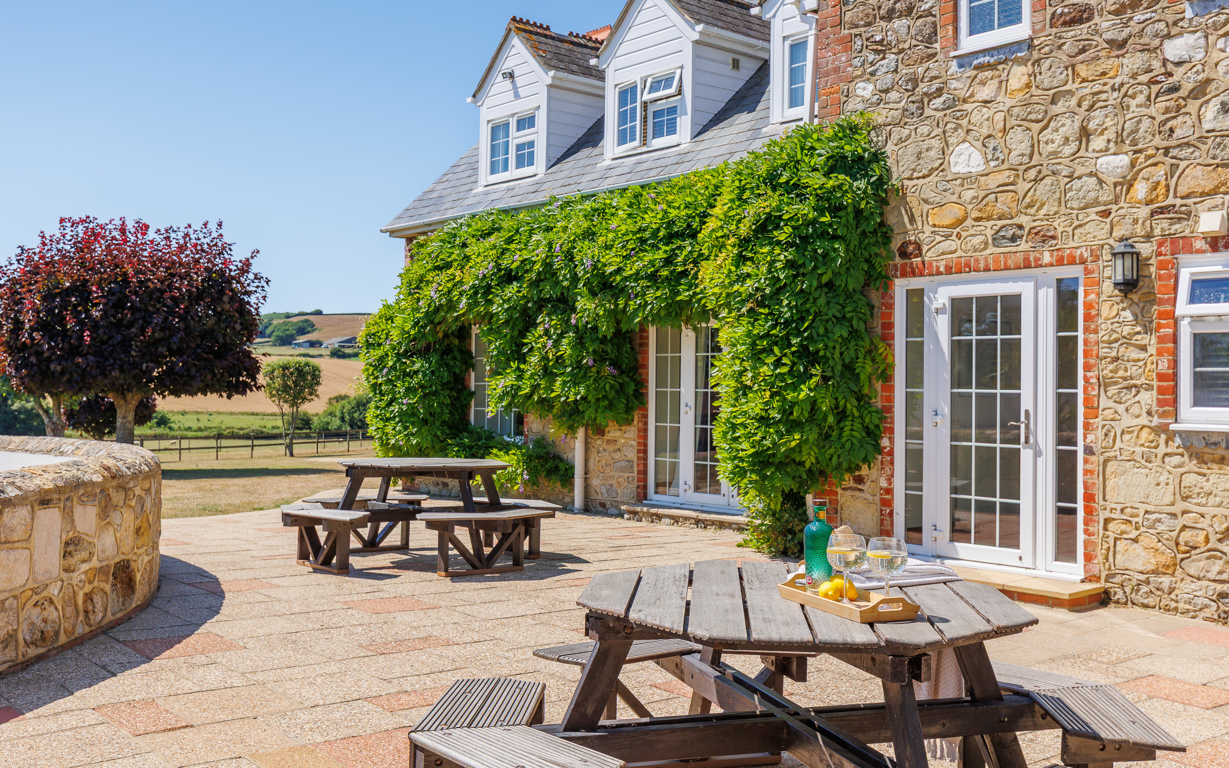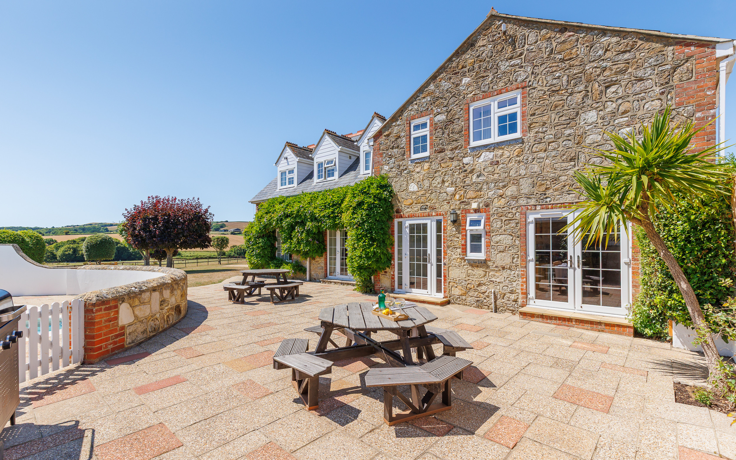The Lodge is set in beautiful countryside surroundings across from the former farmyard and the attractive and historic Rookley Farm House. The accommodation consists of 5 bedrooms, two with en-suite bathrooms, one family bathroom, dining room, conservatory, well-equipped kitchen, large sitting room and doors leading to the patio with outdoor dining area.
